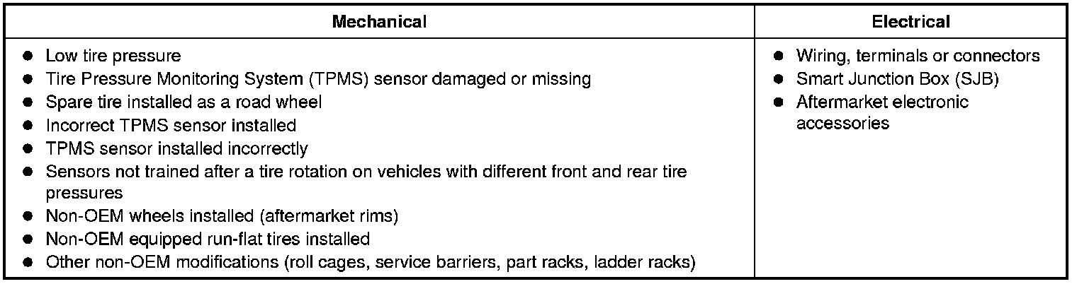 NOTE: Non-OEM modifications made to the vehicle may result in false TPMS warnings.