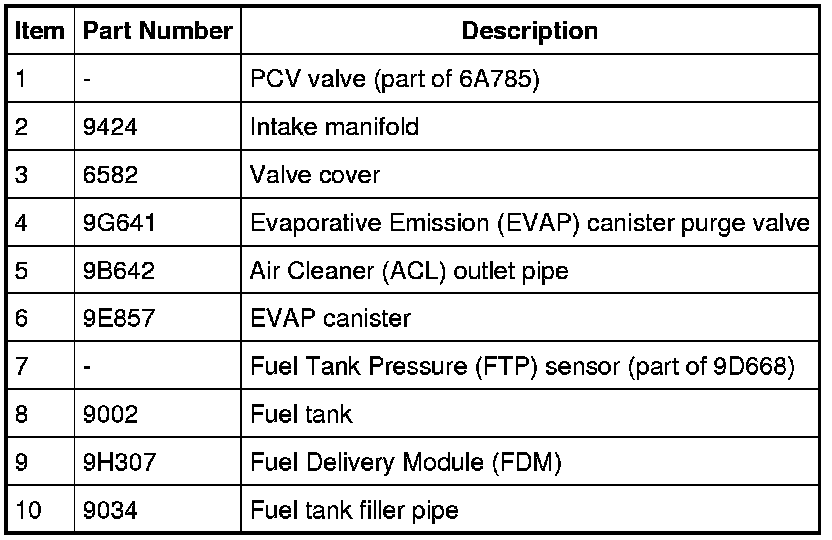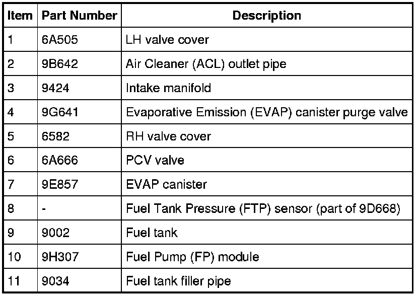 - fuel vapor tube assembly (includes the Fuel Tank Pressure (FTP) sensor).
