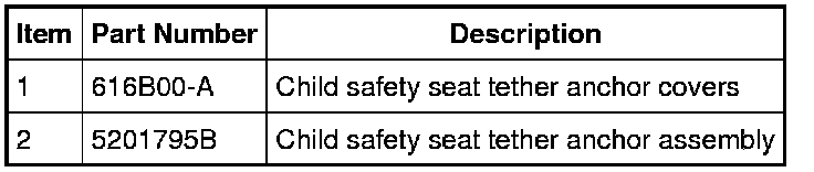 1. Remove the child safety seat tether anchor cover by releasing the top anchor end of the cover first and rocking the cover off of the anchor bolt end.