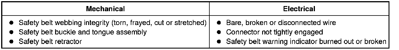 3. If the inspection reveals an obvious concern(s) that can be readily identified, service as required. With the exception of removing a twist from the safety belt webbing, do not attempt to repair a component of the safety belt system; new components must be installed.