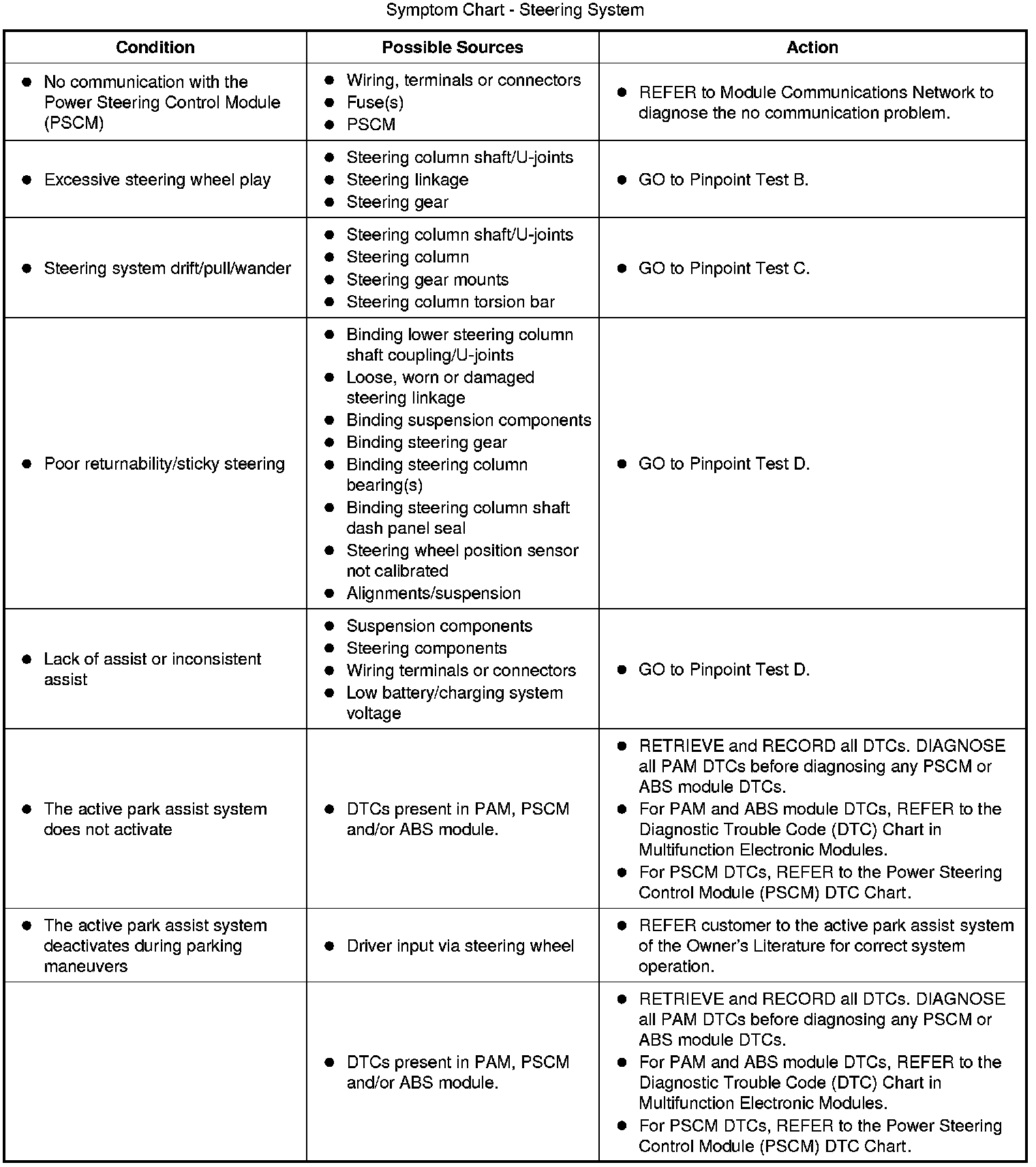 Symptom Chart - Steering System