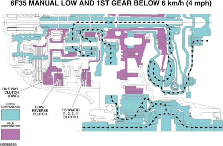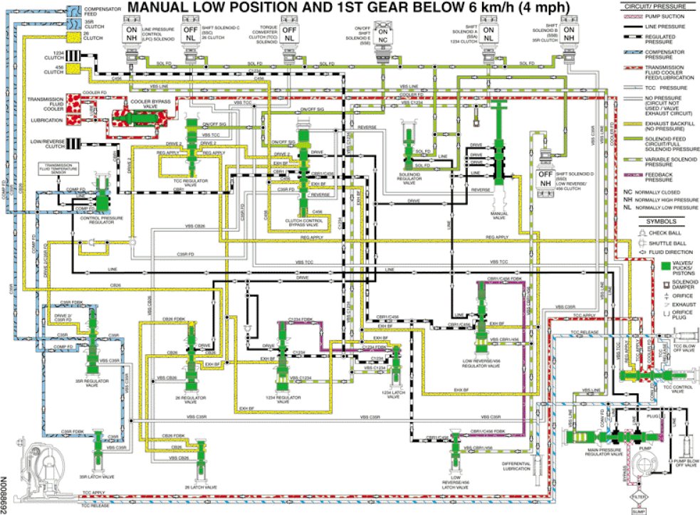 - SSD applies pressure to the low reverse/456 regulator and latch valves to apply the low/reverse clutch.