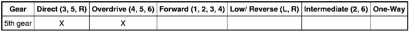 5th Gear Failsafe Clutch Application Chart
