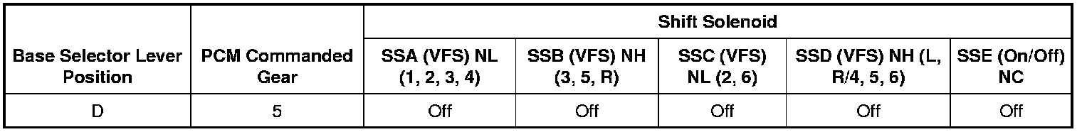 5th Gear Failsafe Solenoid Operation Chart