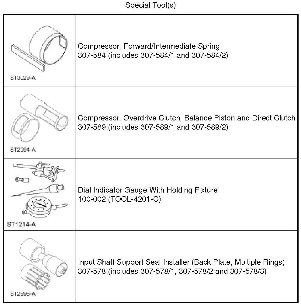 11. Remove the Overdrive Clutch, Balance Piston and Direct Clutch Compressor 307-589/2 and Forward/Intermediate Spring Compressor 307-584/2.