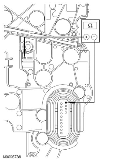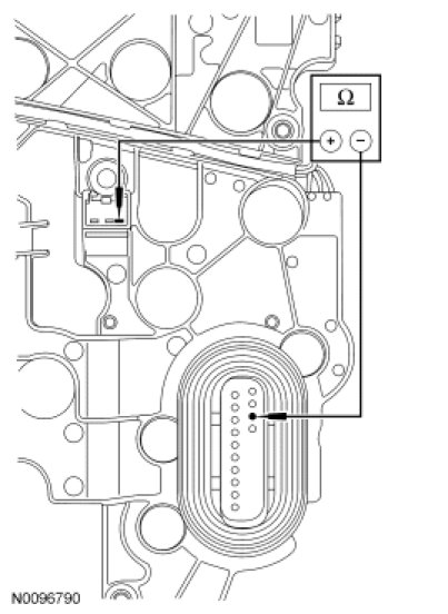- Measure the resistance of the solenoid body internal sensor signal circuit between the main solenoid body leadframe connector pin 19, leadframe side and the OSS sensor connector pin 3, leadframe side.