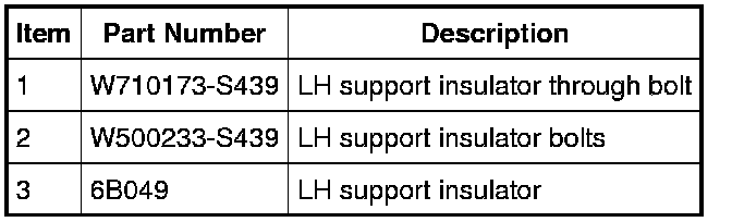 3. Remove the side LH support insulator bolts.
