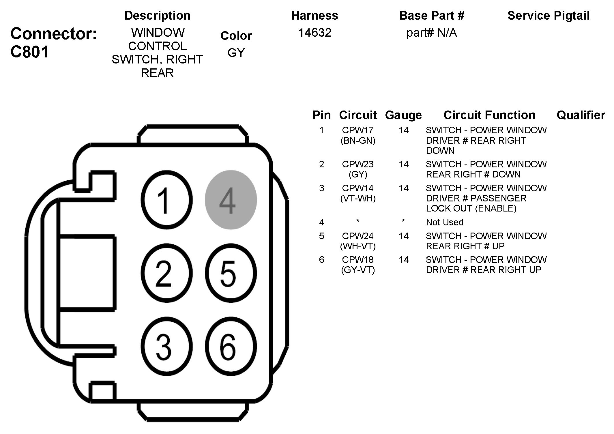 C801 Window Control Switch, Right Rear