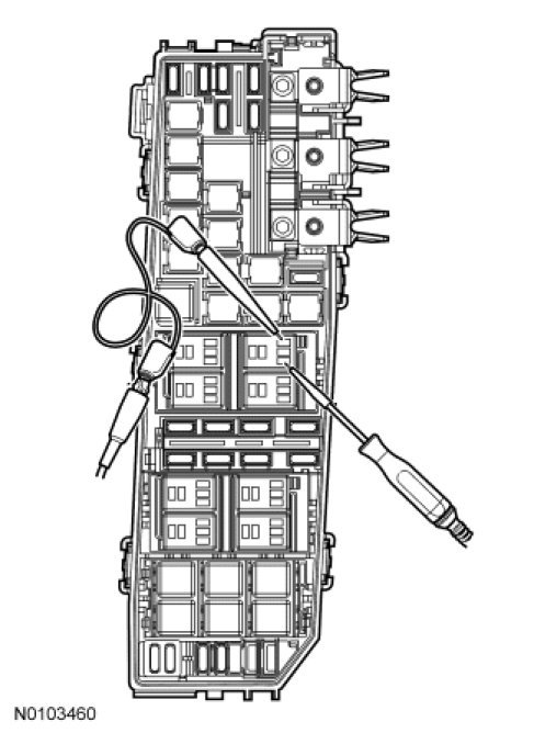 NOTICE: The following step uses a test light to simulate normal circuit loads. Use only the test light recommended in the Special Tools table at the beginning of this system. To avoid connector terminal damage, use the Flex Probe Kit for the test light probe connection to the vehicle. Do not use the test light probe directly on any connector.