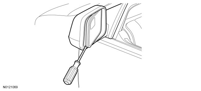 1. Position the exterior mirror glass to the full upward and inboard position and insert a thin, flat-blade screwdriver.