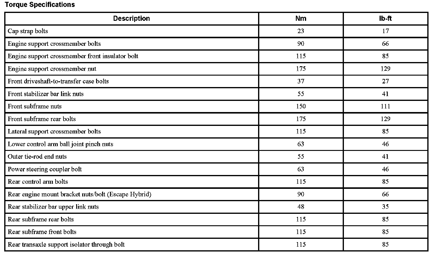 Torque Specifications: