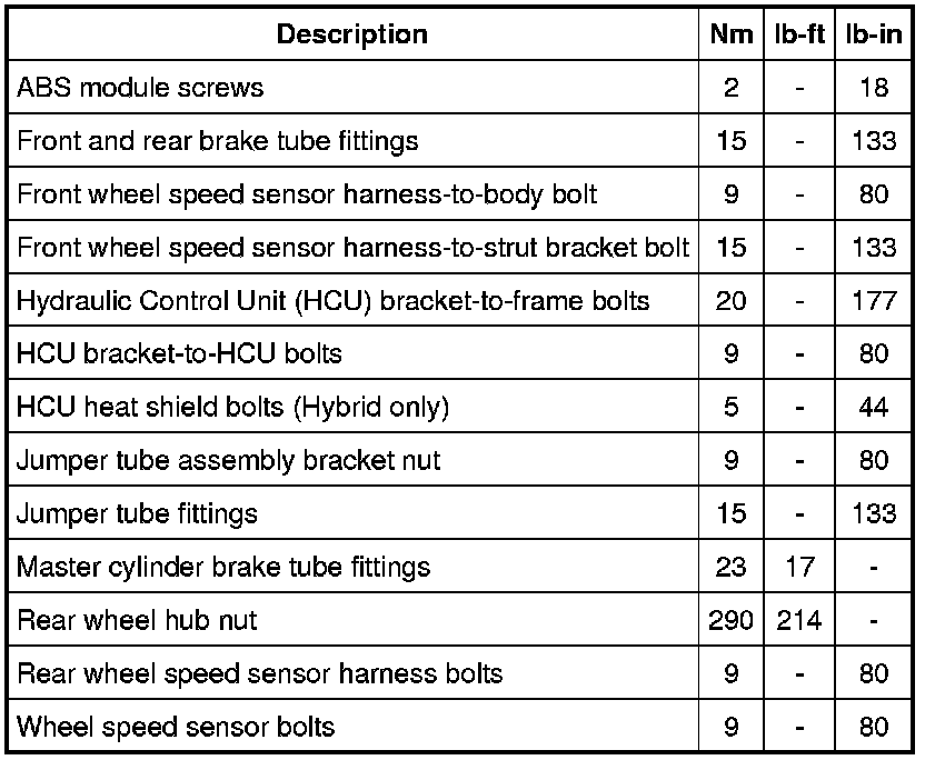 Torque Specifications