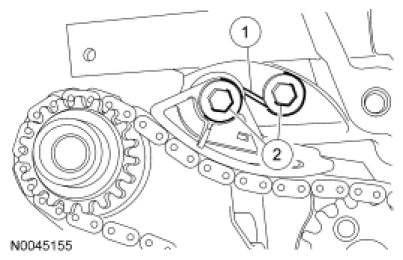 65. Remove the bolts and the LH timing chain guide.