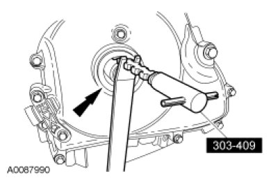 59. NOTICE: Use care not to damage the engine front cover or the crankshaft when removing the seal.