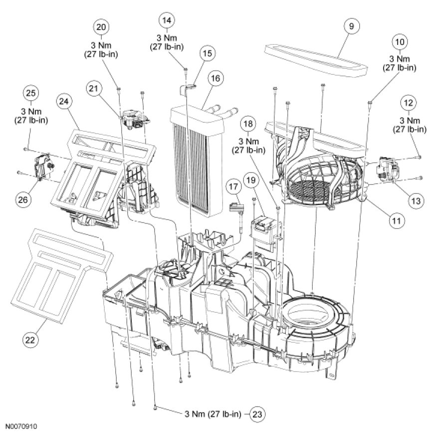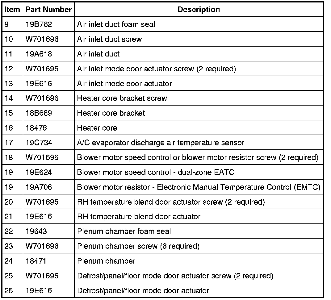 18. Remove the 2 LH temperature blend door actuator screws (if equipped).