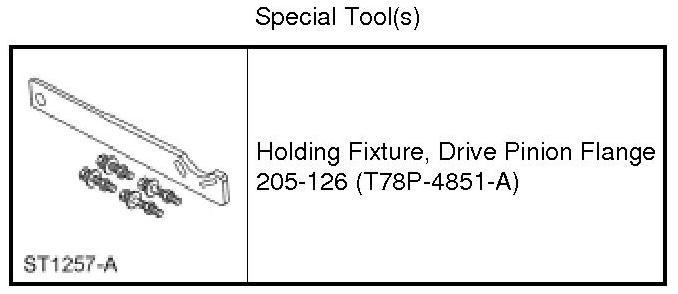 Using the Drive Pinion Flange Holding Fixture to hold the flange, remove and discard the pinion nut.