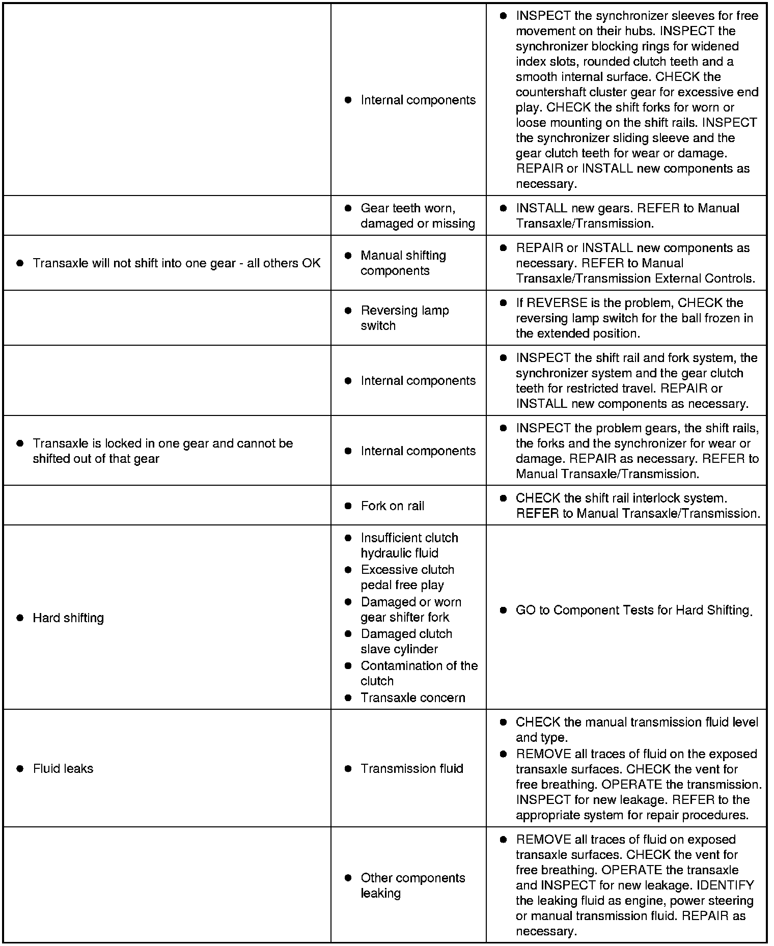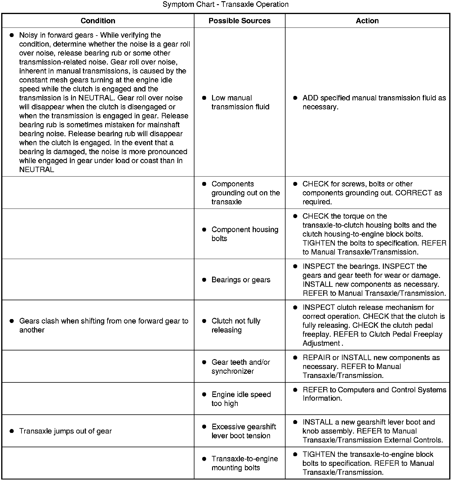 Symptom Chart - Transaxle Operation