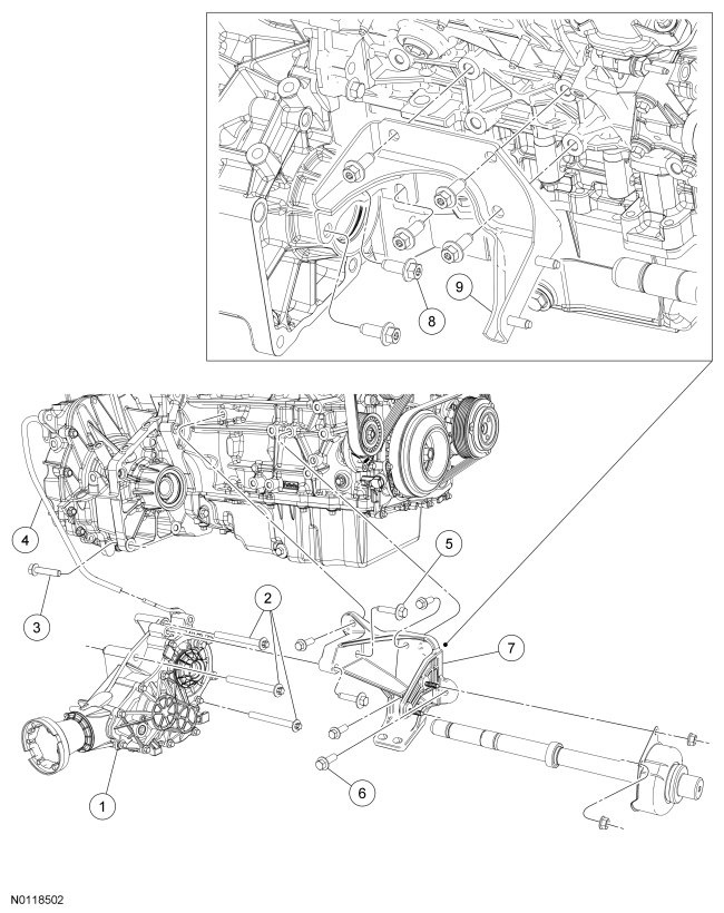 8. Remove the Power Transfer Unit (PTU)-to-engine bracket.