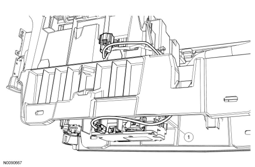 1. Remove the floor console. For additional information, refer to Instrument Panel and Console Console - Front, Floor Console - Front, Floor.