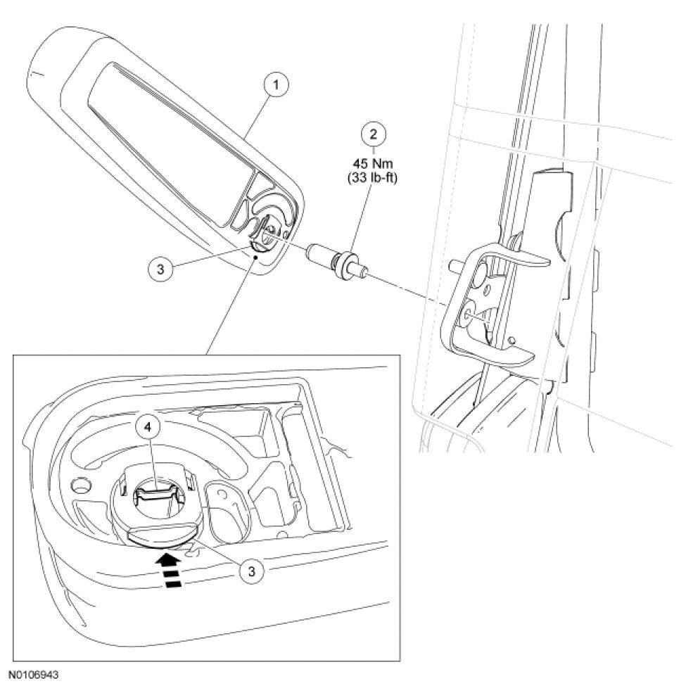 - If the armrest bolt is loose, before installing the armrest, tighten to 45 Nm (33 lb-ft).