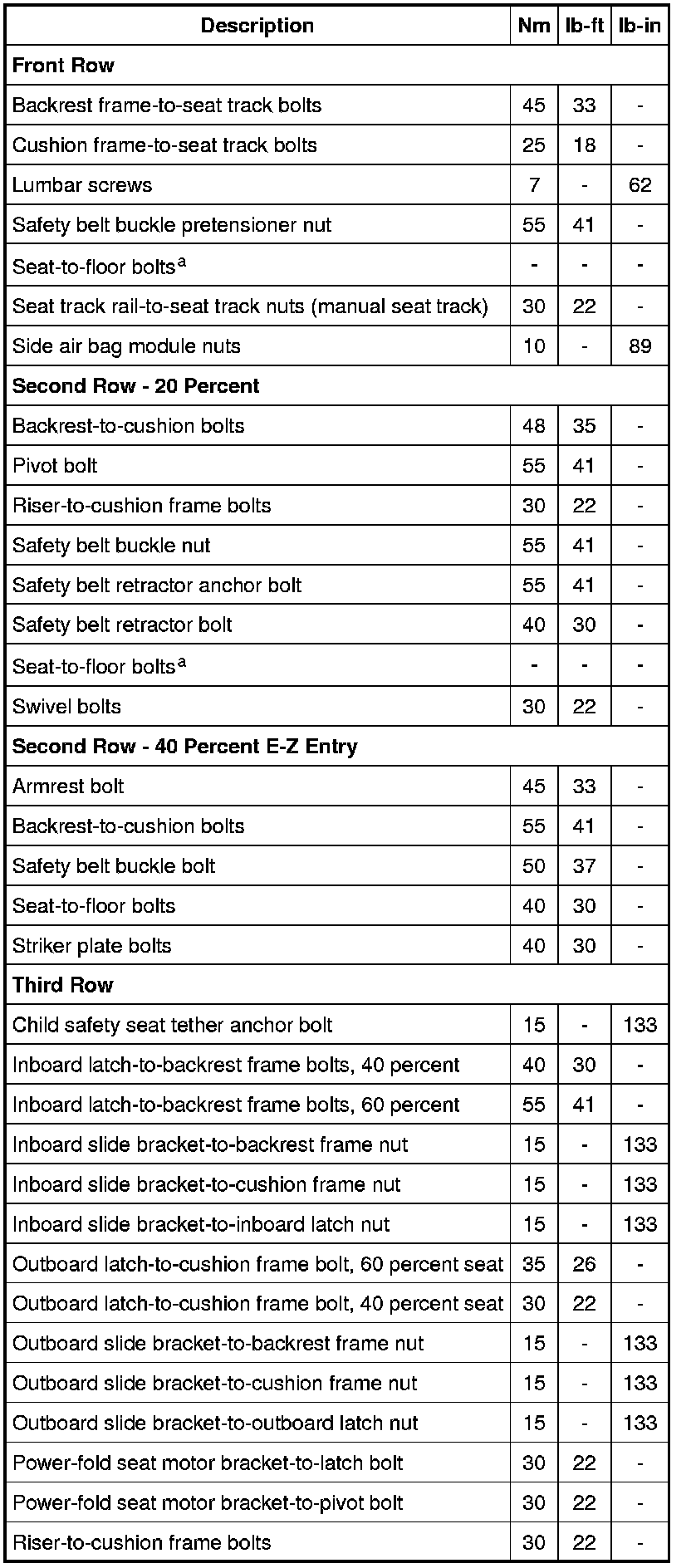Torque Specifications