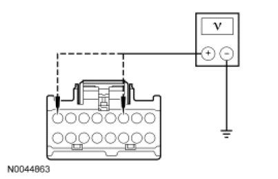 - Measure the voltage between DCSM C3265B-2, circuit VHS27 (WH/OG), harness side and ground.