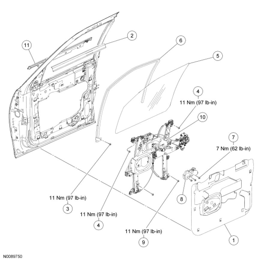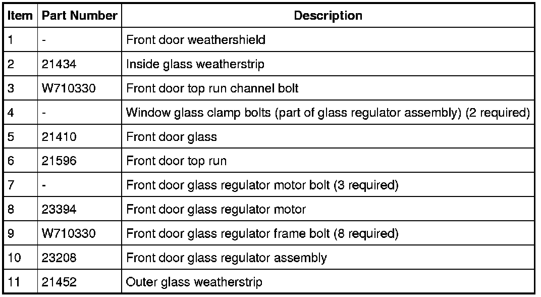 Glass, Frames and Mechanisms - Exploded View, Front Door