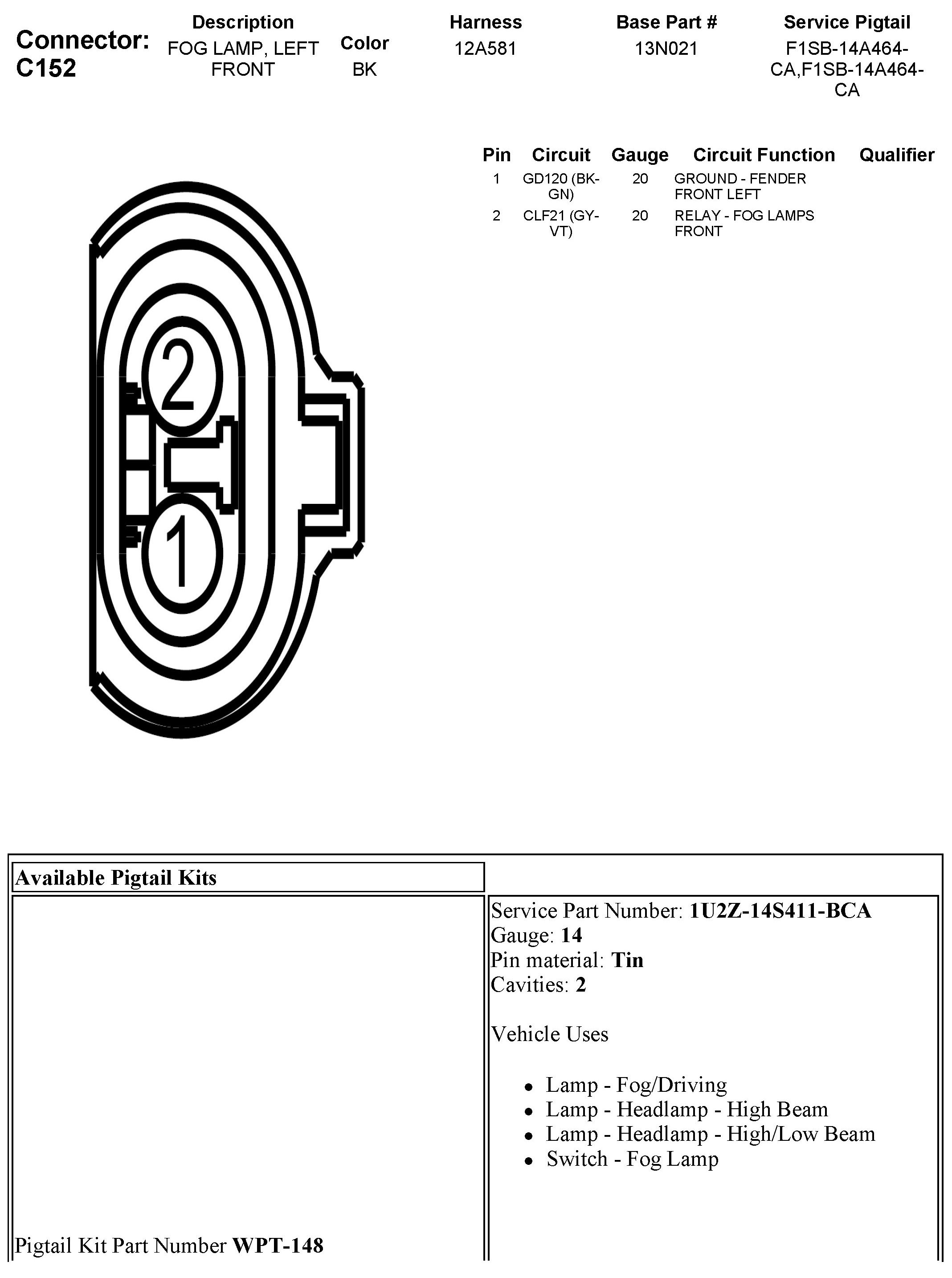 C152 Fog Lamp, Left Front