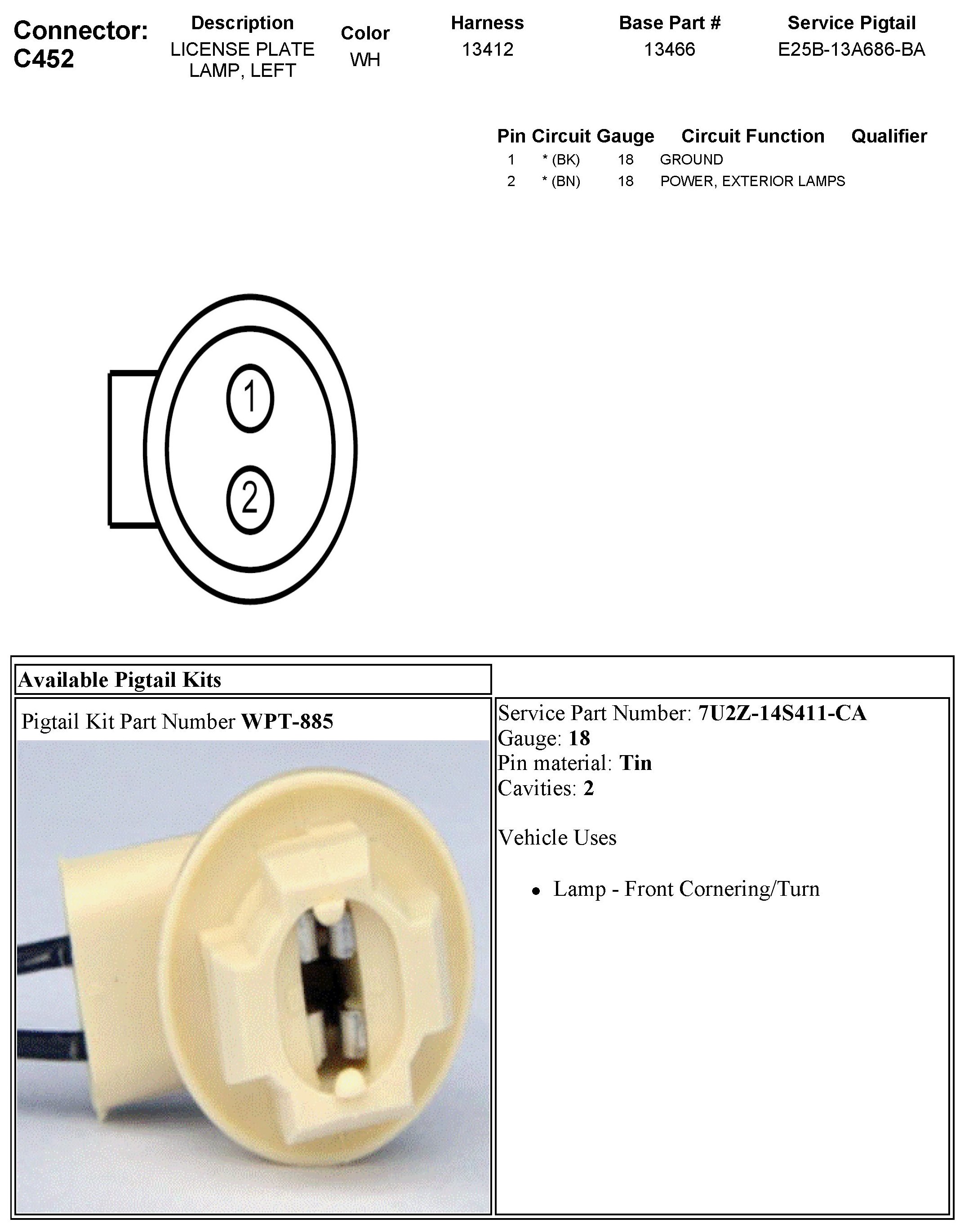 C452 License Plate Lamp, Left