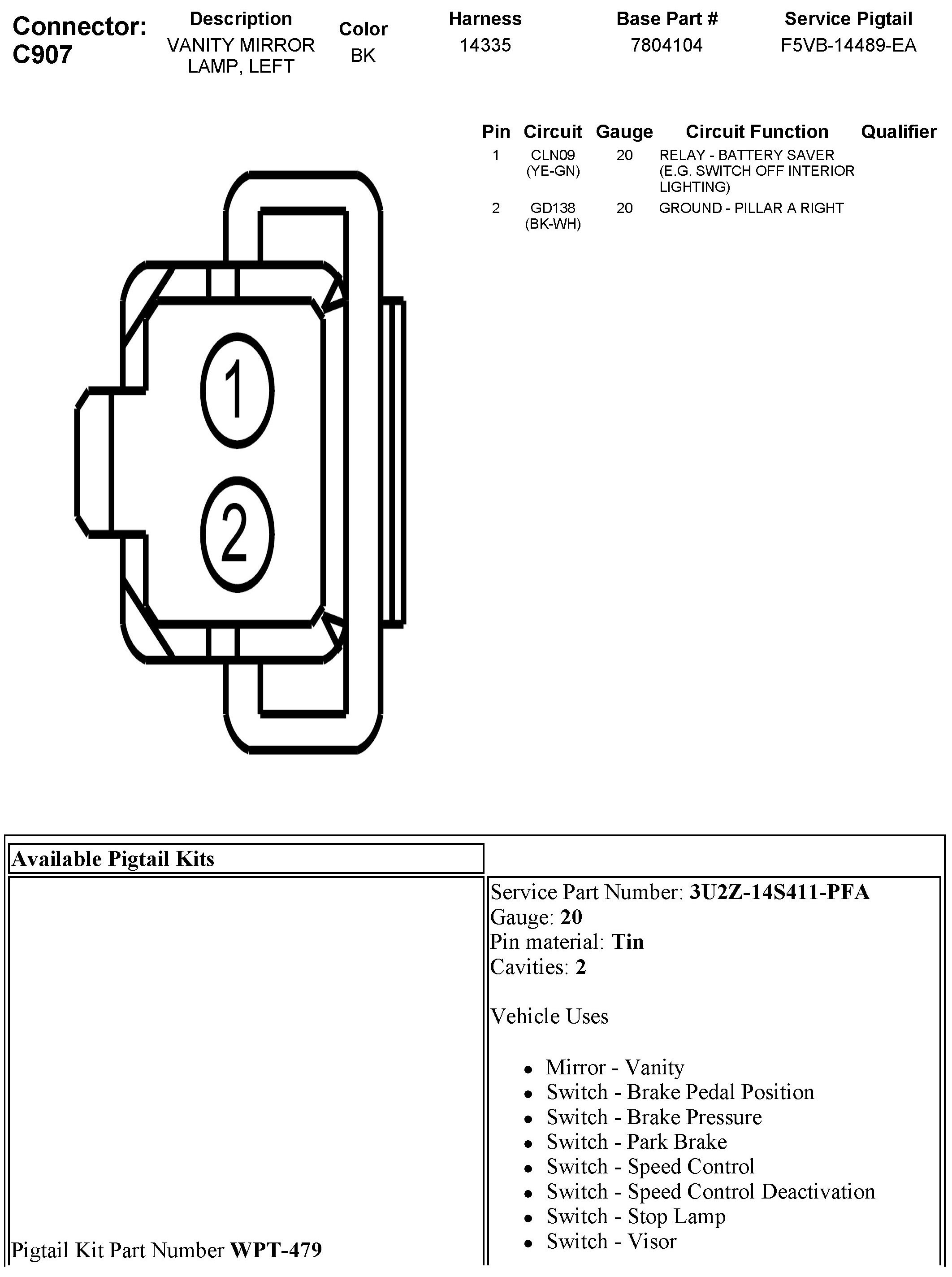 C907 Vanity Mirror Lamp, Left