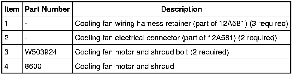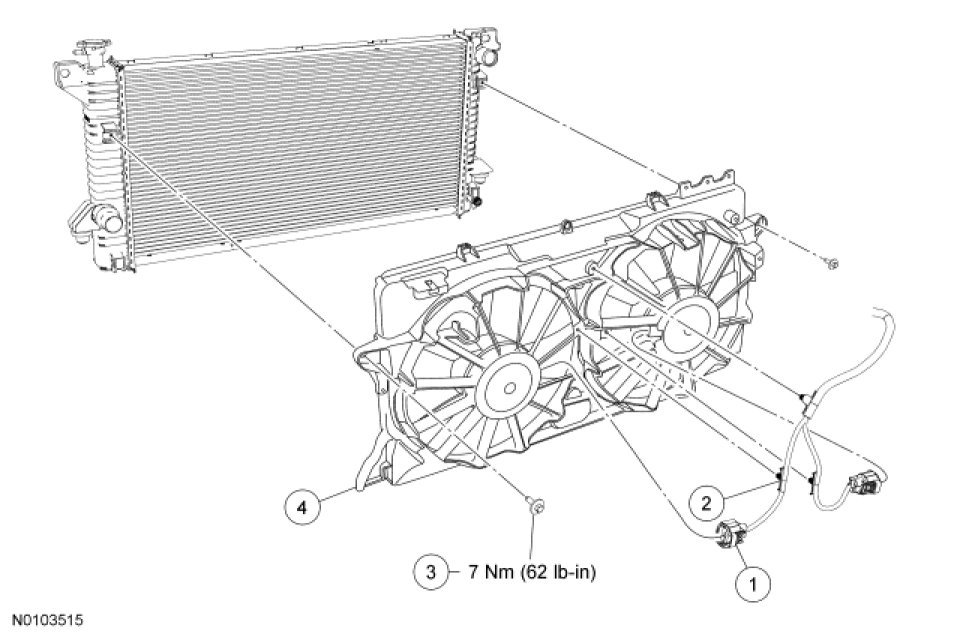 7. Detach the wiring harness retainer from the LH side of the cooling fan motor and shroud.