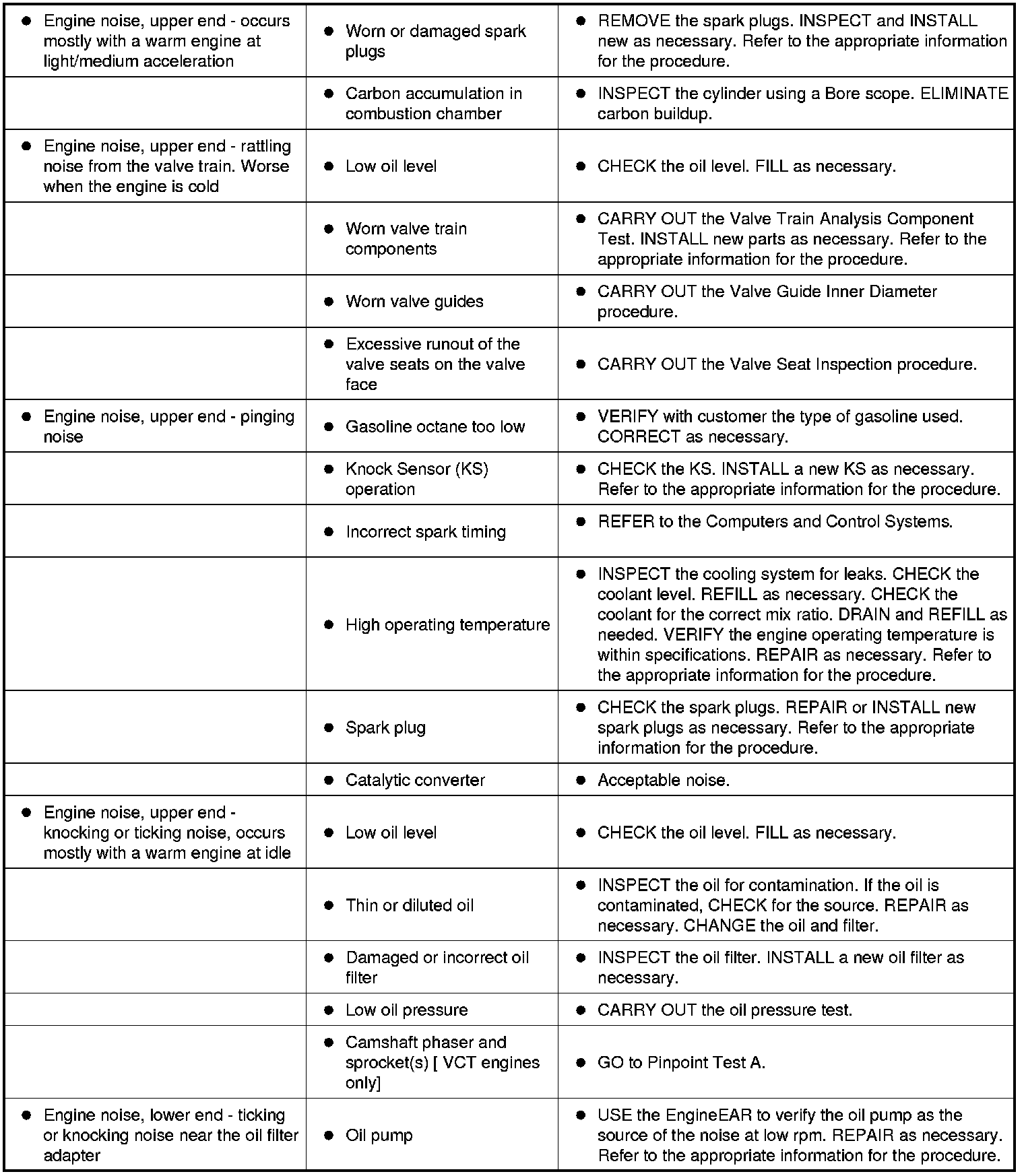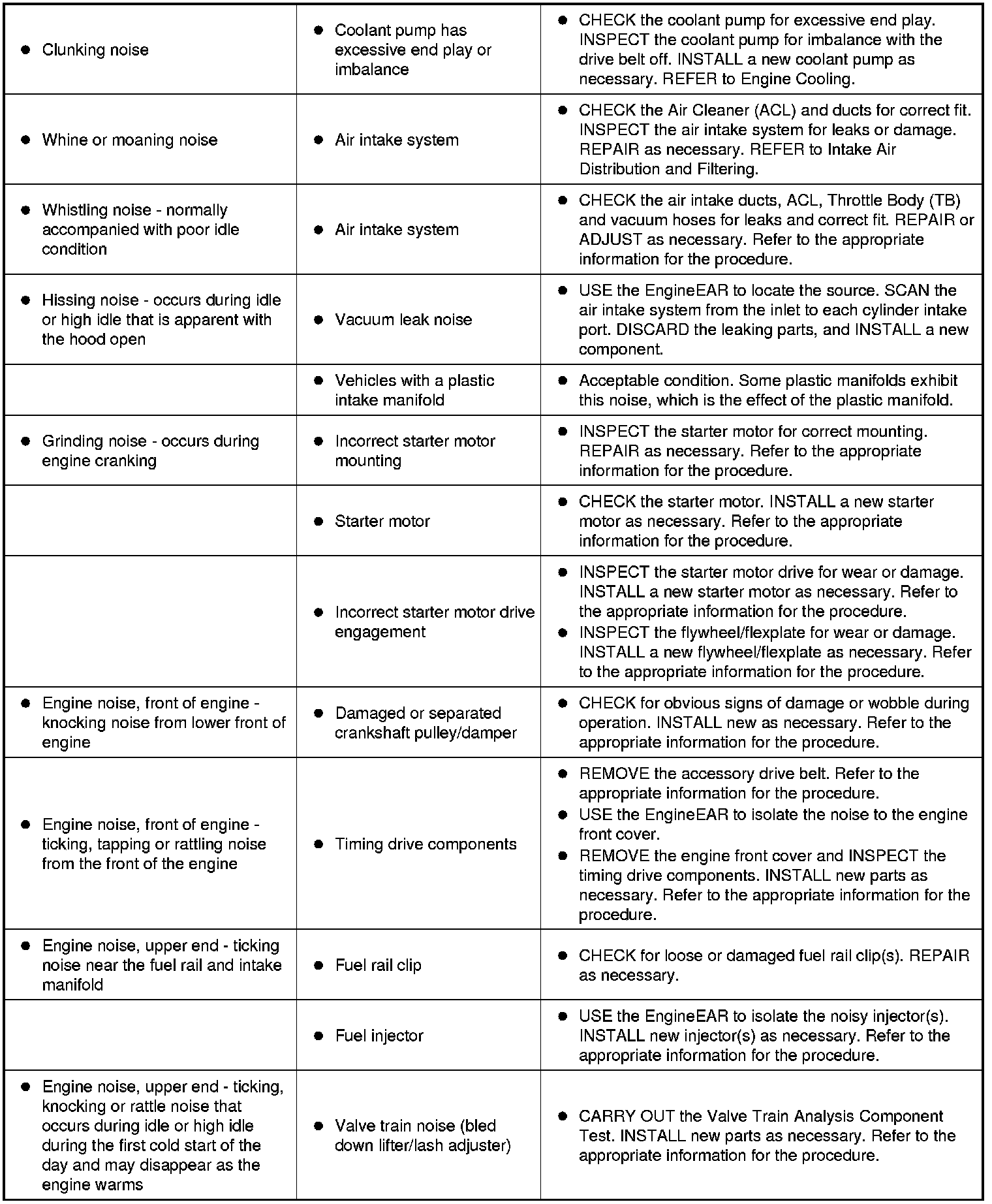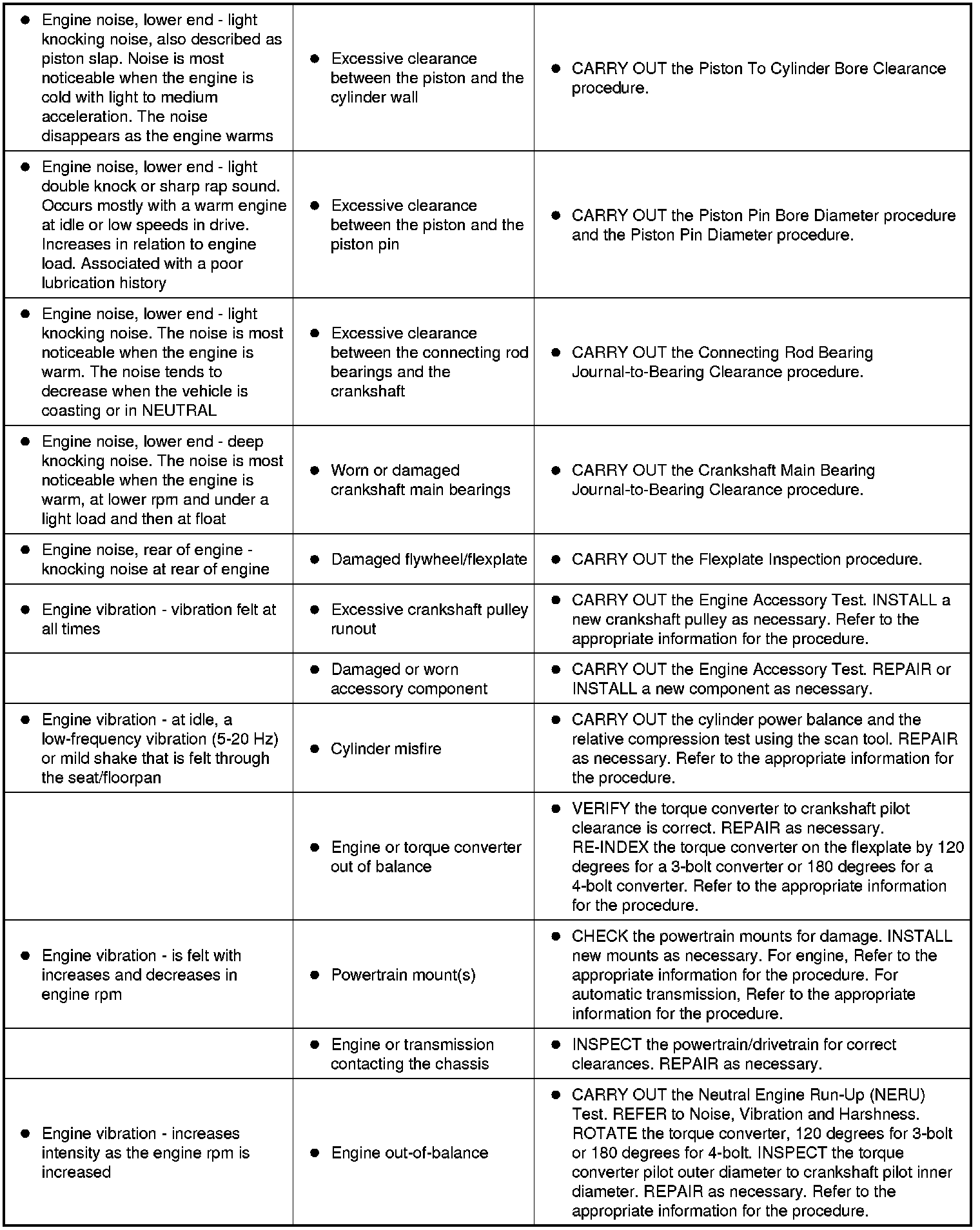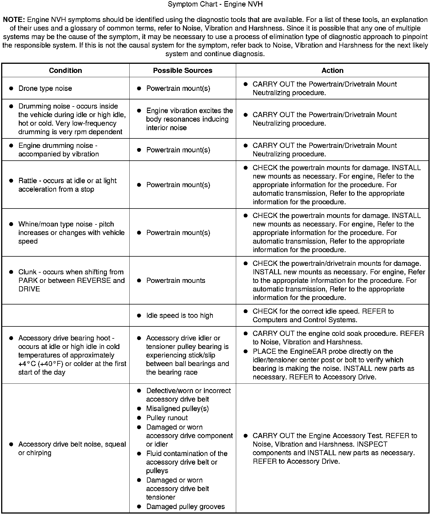 Symptom Chart - Engine NVH