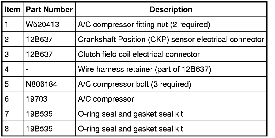 NOTE: A new A/C compressor may come equipped with an A/C clutch disc and hub, A/C compressor pulley and A/C clutch field coil already installed. If these components are not pre-installed, it will be necessary to transfer these parts from the old A/C compressor to the new compressor prior to installation of the A/C compressor if suitable for reuse.