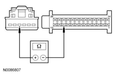 - Measure the resistance between HVAC module - EMTC C2357A-10 or HVAC module - DATC C228A-10, circuit RH111 (GY/BU), harness side and: