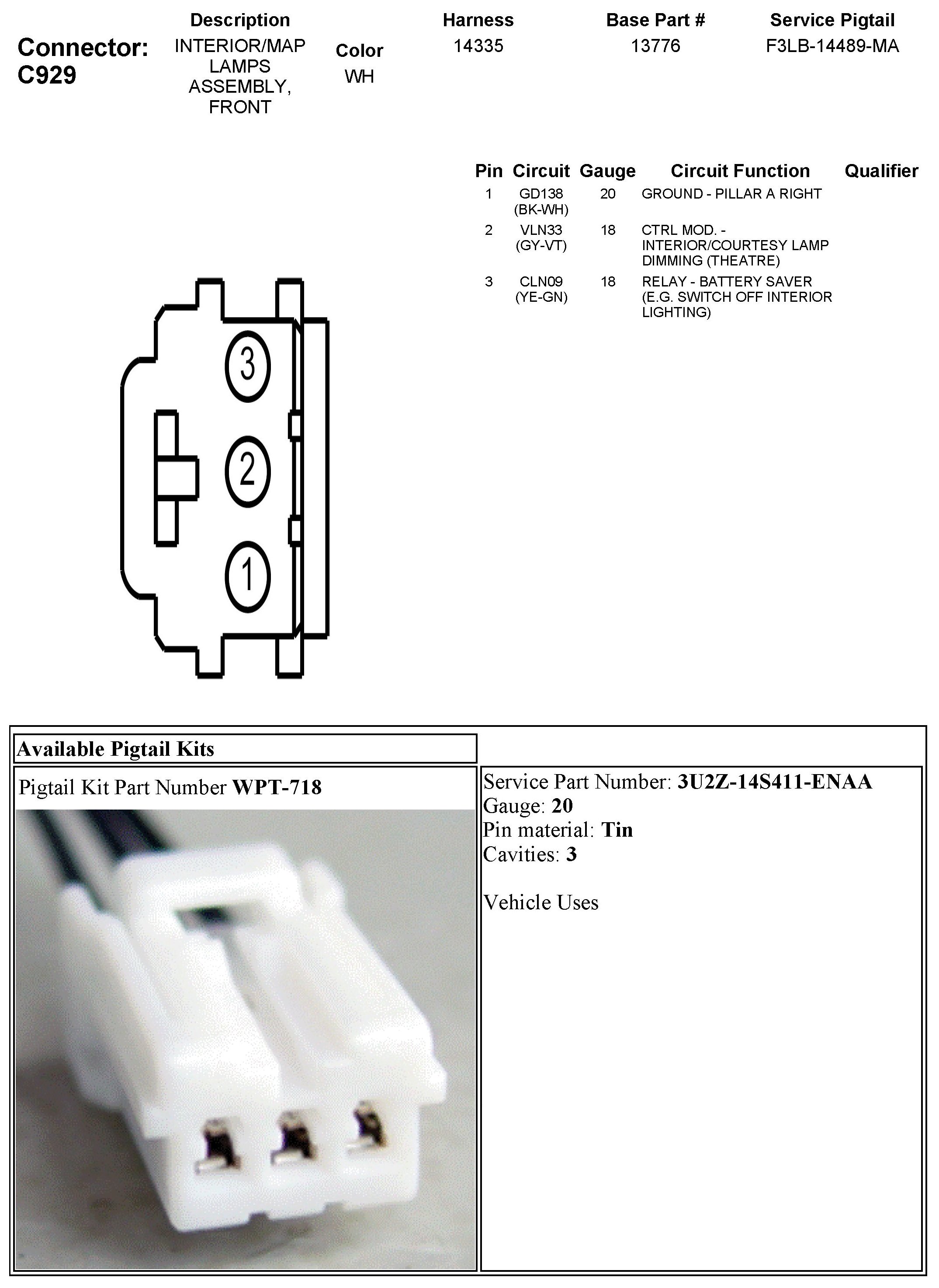 C929 Interior/MAP Lamps Assembly, Front
