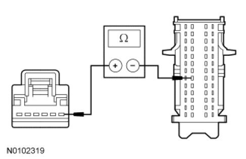 - Measure the resistance between the instrument panel dimmer switch C2065-2, circuit VLN36 (GY/OG), harness side and the SJB C2280b-36, circuit VLN36 (GY/OG), harness side.
