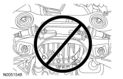 NOTICE: Do not use the differential housing as a lift point. Leaks or damage to the rear axle cover and adjoining differential housing surface may occur if a floor jack or any lifting device is allowed to contact the cover at any point where the cover joins the housing.