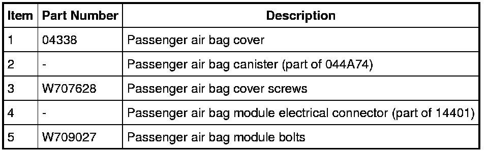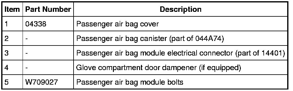 NOTICE: Do not install a new passenger air bag module assembly due to a damaged or discolored passenger air bag cover. The passenger air bag cover can be serviced separately from the passenger air bag module assembly. For additional information, refer to Air Bag Trim Cover - Passenger Air Bag Trim Cover - Passenger.