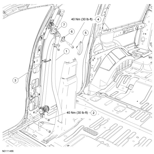 Remove the upper and lower B-pillar trim panels. For additional information, refer to Interior Trim and Ornamentation B-Pillar Trim Panel.