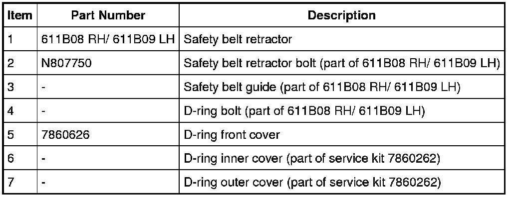 WARNING: After any crash, all of the following safety belt assemblies and attaching hardware must be inspected to verify correct function: