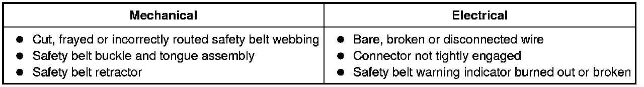 3. If the inspection reveals an obvious concern(s) that can be readily identified, service as required. With the exception of removing a twist from the safety belt webbing, do not attempt to repair a component of the safety belt system; new components must be installed.