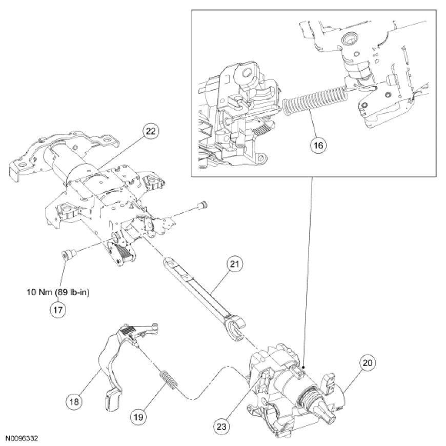 11. Remove the 2 screws and separate the steering column tilt housing assembly from the steering column.