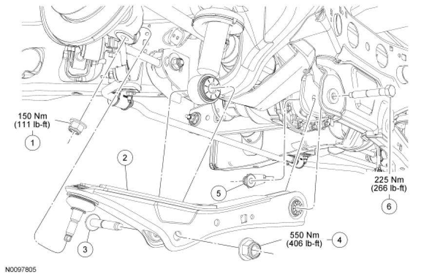 6. Tighten the lower arm-to-frame bolt to 225 Nm (166 lb-ft).