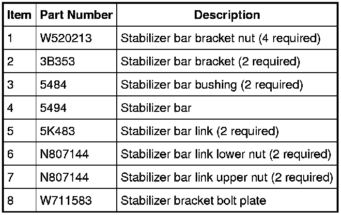 4. Remove the 4 stabilizer bar bracket nuts, brackets and the stabilizer bar.