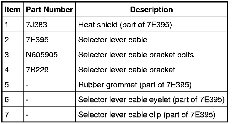 10. Remove the selector lever cable and rubber grommet.