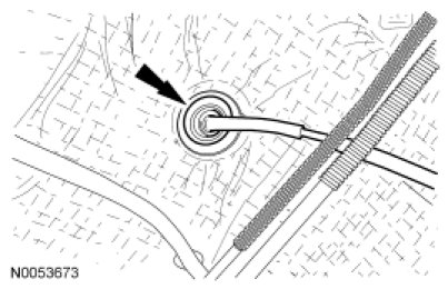 7. NOTE: When installing the selector lever cable, make sure that the selector lever cable locking tabs are locked in place. Press the selector lever cable into the bracket and listen for the selector lever cable to click into place. Pull back on the selector lever cable to make sure that it is locked into the bracket.