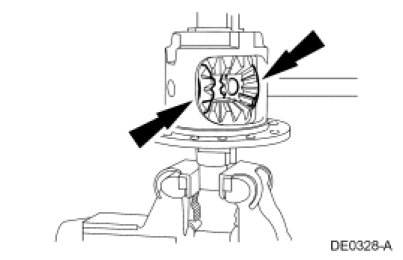 1. Rotate the differential case to make sure the differential bearings are seated.