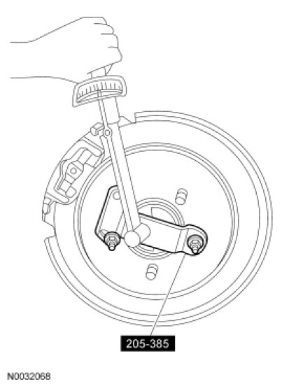 Raise and remove only one rear wheel. Install the Differential Gauge on the wheel bolts.
