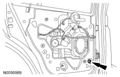1. Remove the rear door trim panel. For additional information, refer to Interior Trim and Ornamentation Service and Repair.