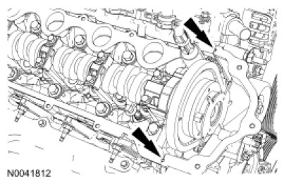 15. NOTICE: Damage to the camshaft phaser and sprocket assembly will occur if mishandled or used as a lifting or leveraging device.